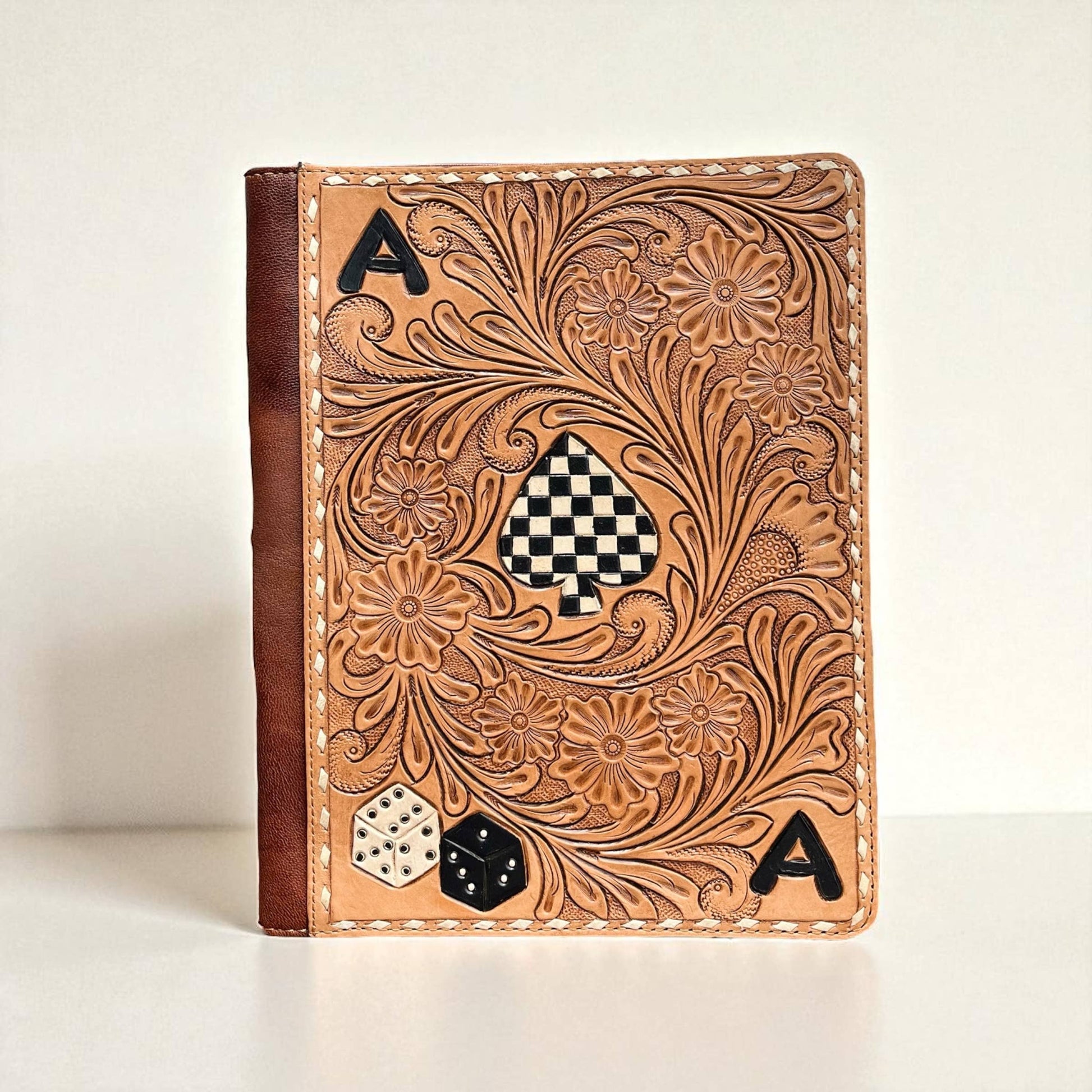 Elevate your organization with our exquisite tooled leather planners and folders. Perfect for work or personal use, they blend style with practicality!