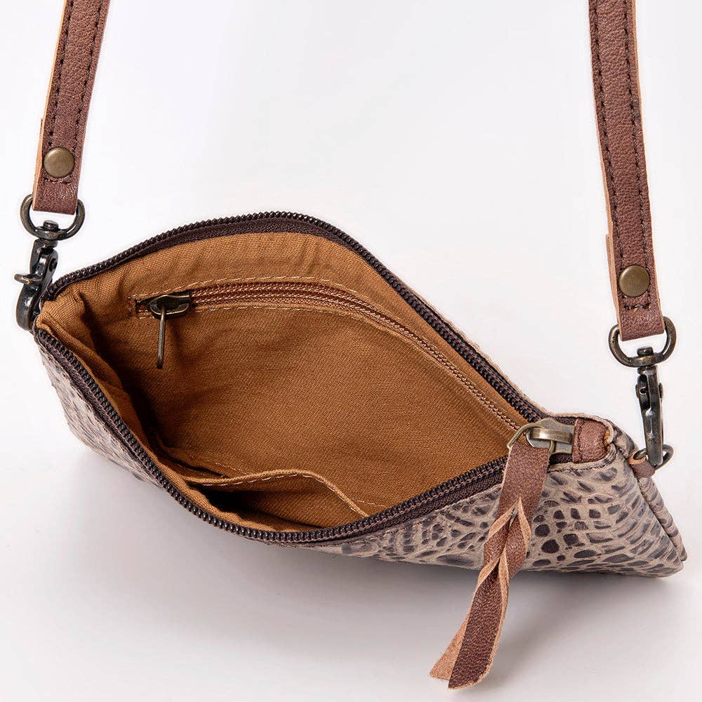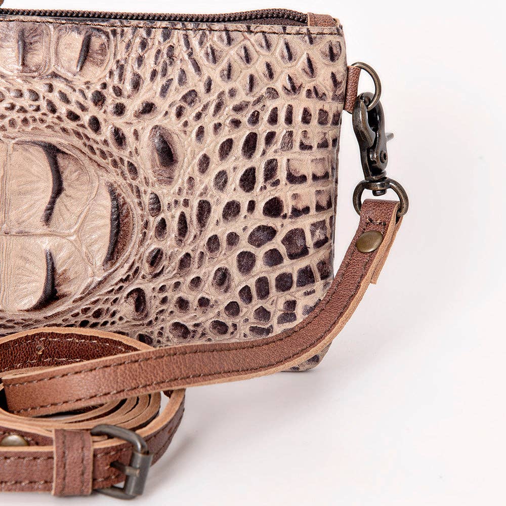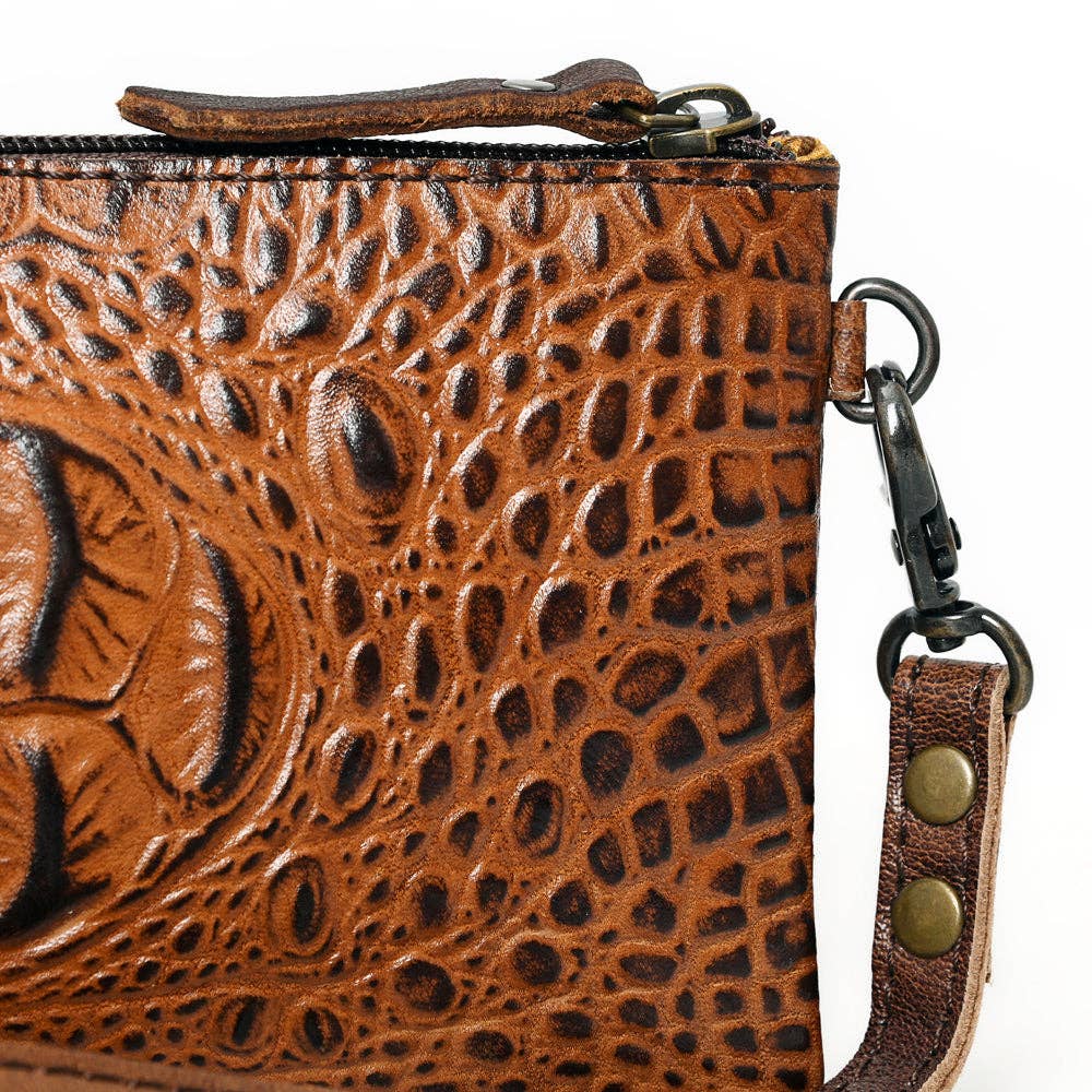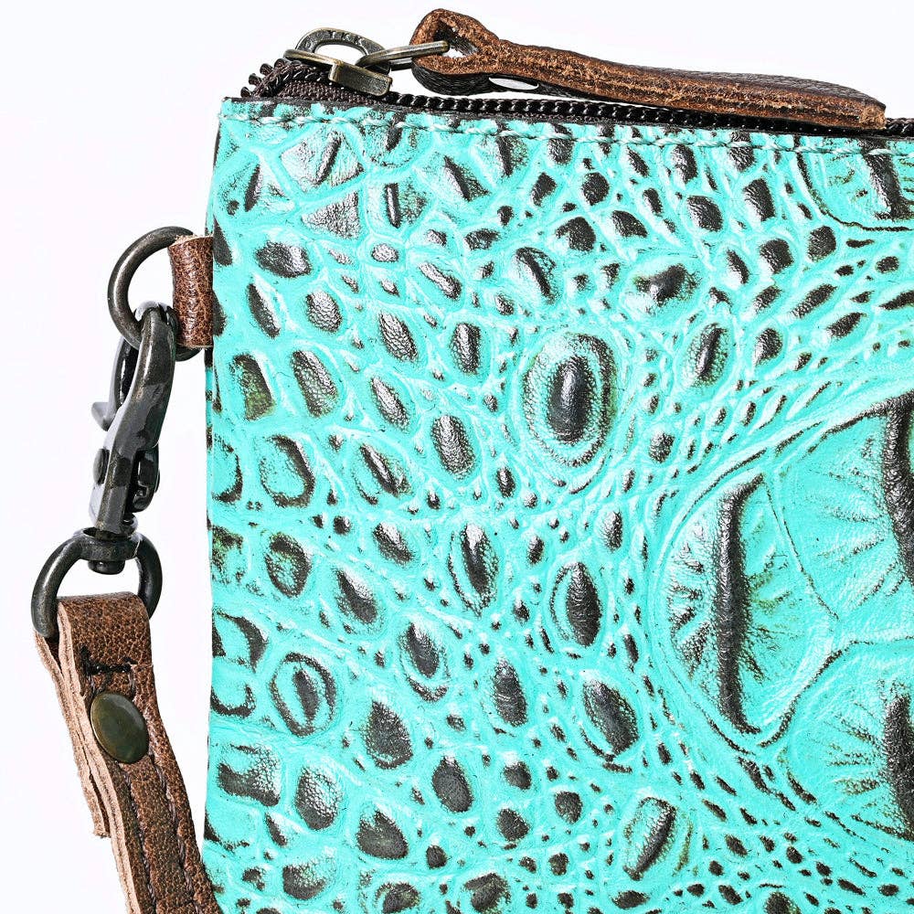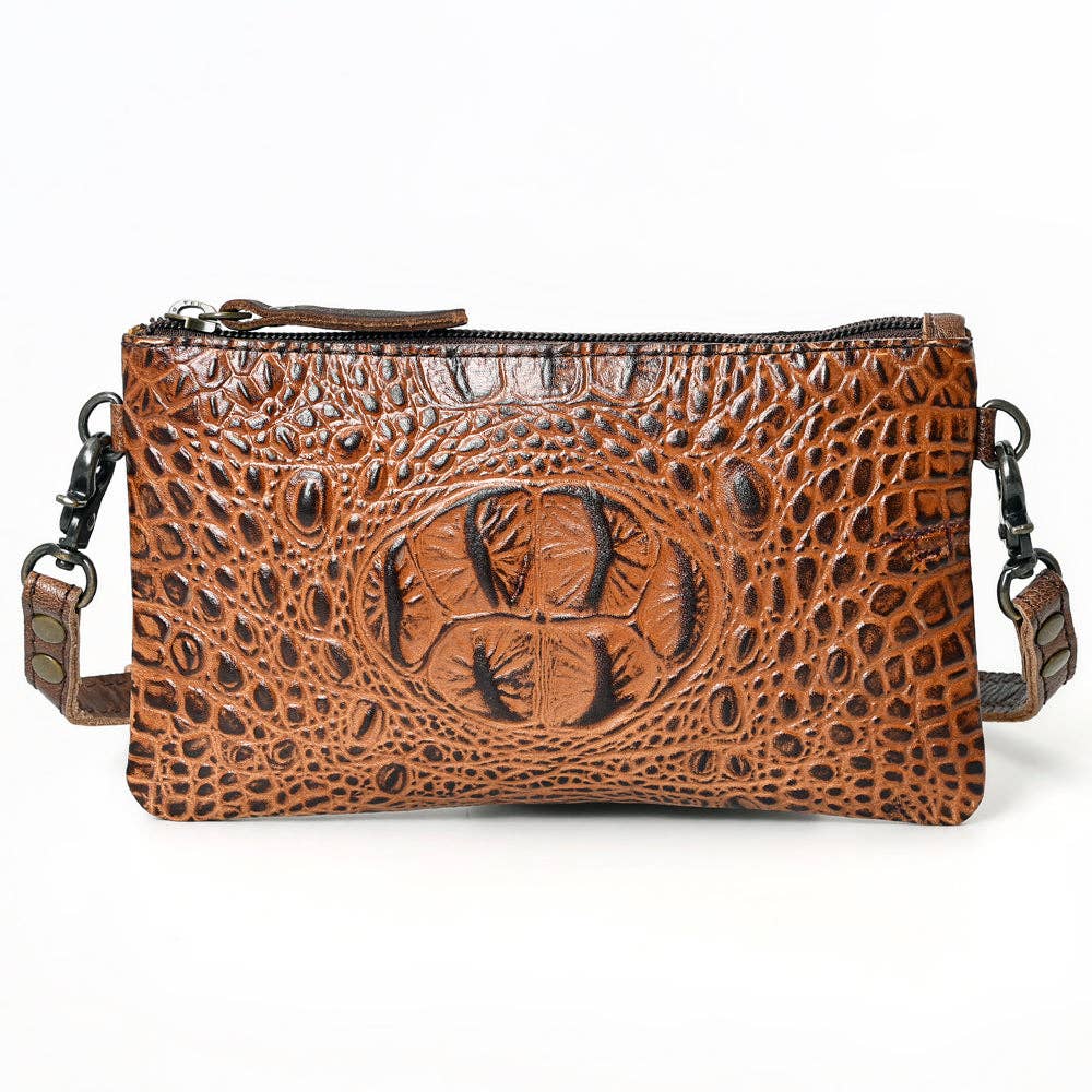 Bold, rugged, and unmistakably Western—this genuine leather crossbody bag features a striking crocodile-embossed texture with a central claw motif that commands attention. Crafted from high-quality full-grain leather, it offers a compact, lightweight design perfect for daily carry or event outings.