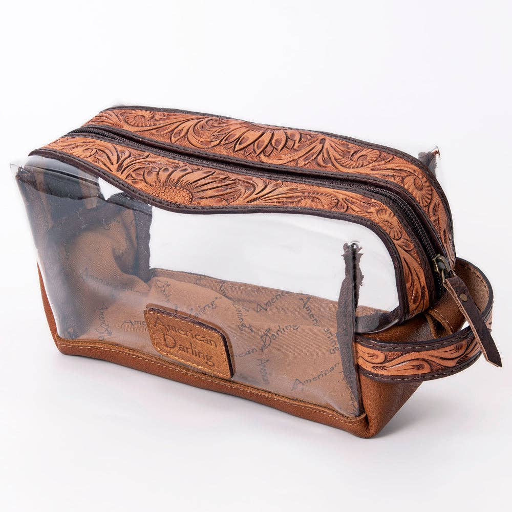 ADBG994 Clear Western Toiletry Bag with Tooled Leather Trim American Darling Travel Pouch