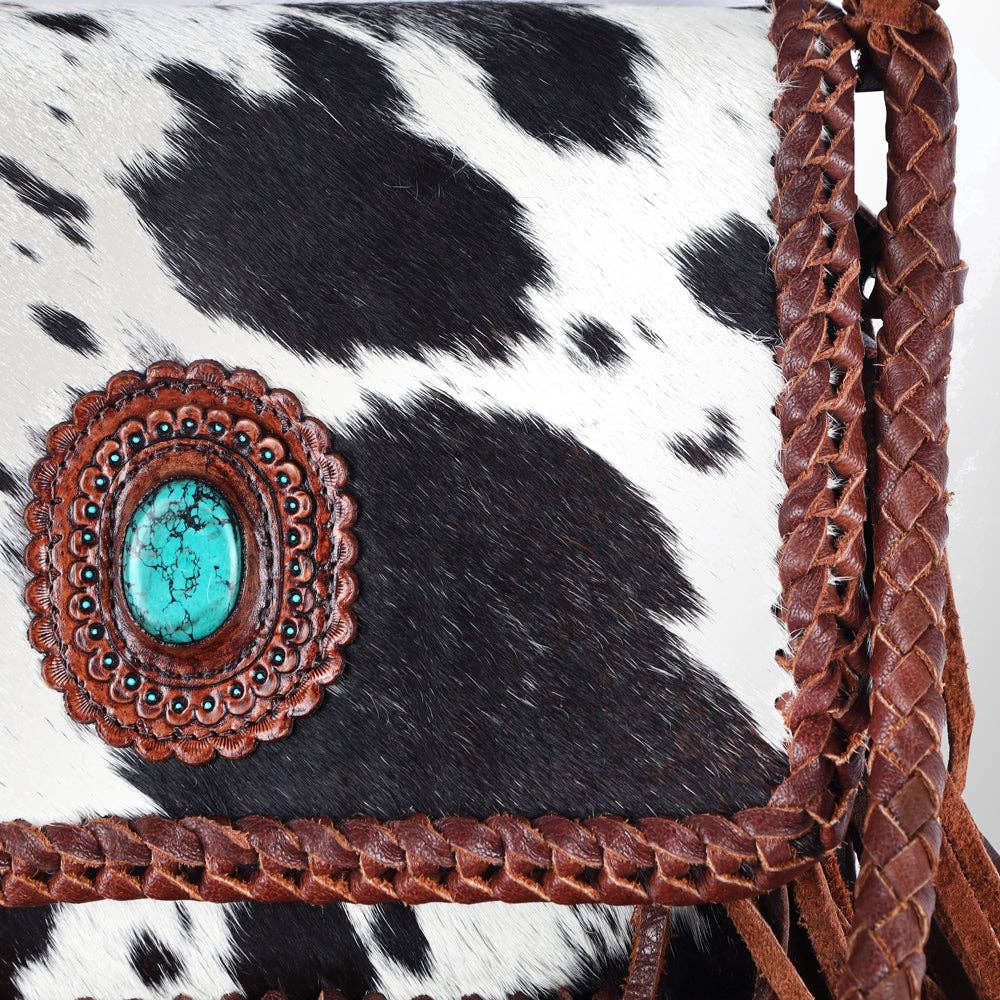 The handpicked cowhide hair-on genuine leather not only adds a soft and tactile element but also serves as an embellishment, enhancing its overall western appearance.