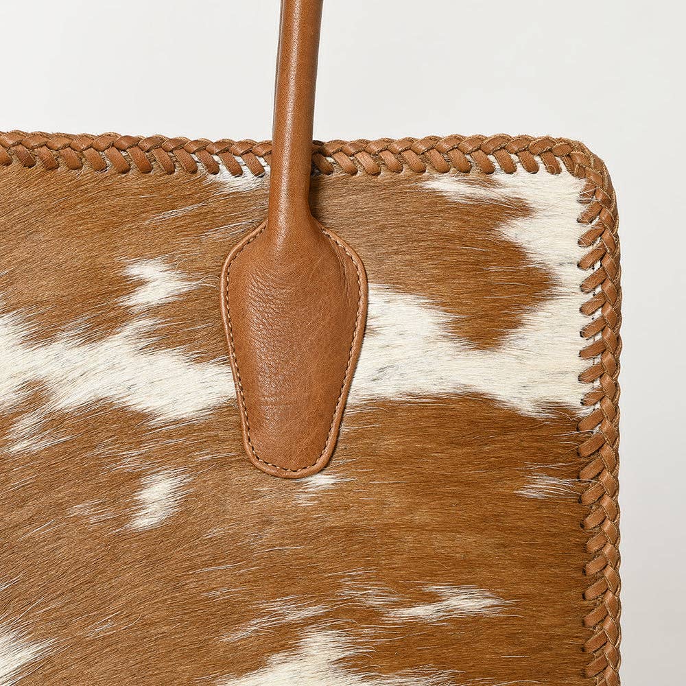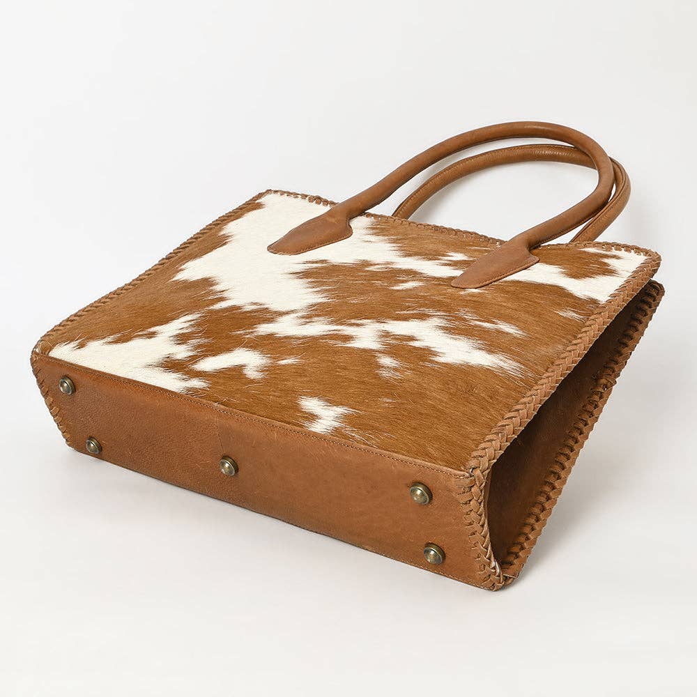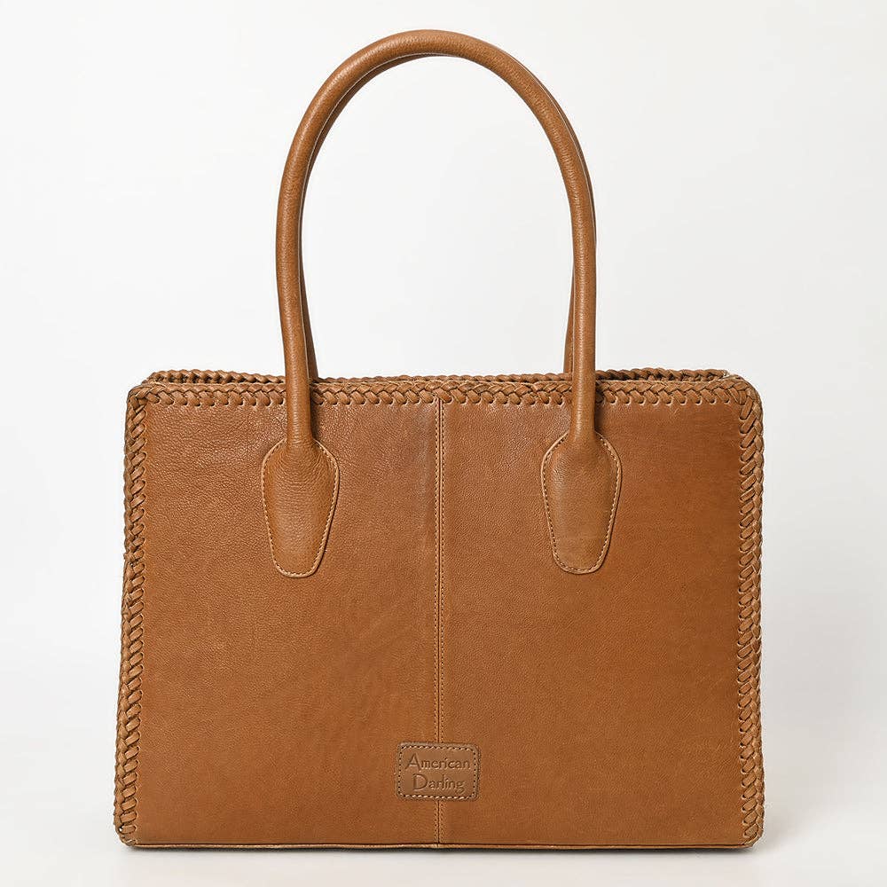 ADBGM301 Cowhide Leather Tote - Structured Western Handbag with Braided Trim