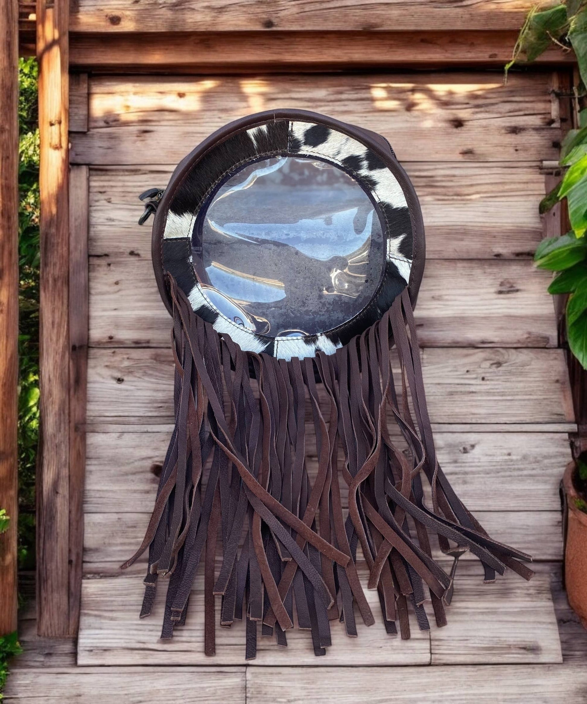 Large Brown Clear Cowhide Cateen Fringe Bag