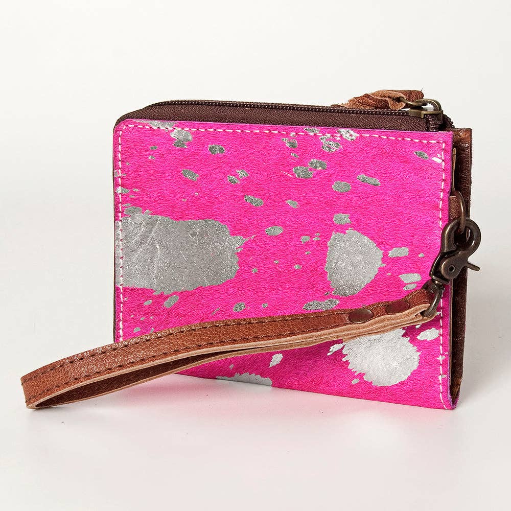 LC-ADBG821 Hair-On Cowhide Leather Coin Purse Western Mini Zip Wallet