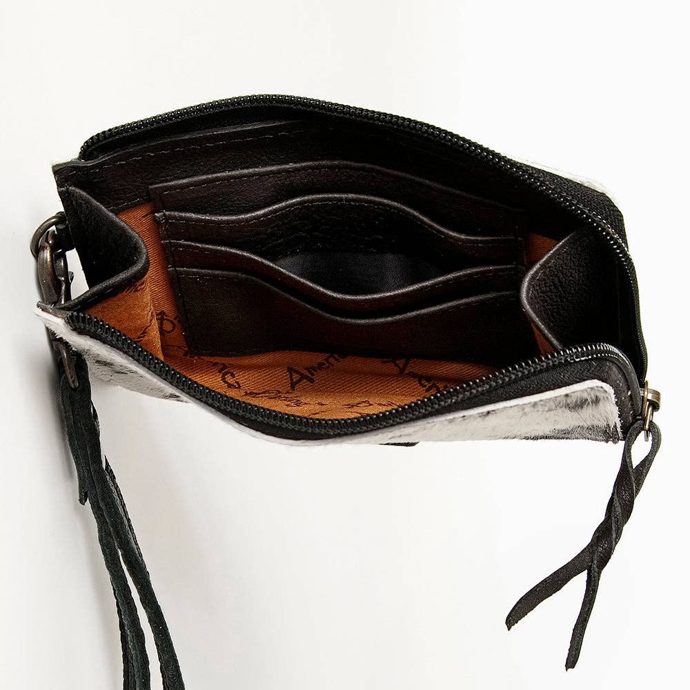 Keep your coins and small essentials secure with this handcrafted Hair-On Cowhide Leather Coin Purse by American Darling. A perfect blend of rustic charm and modern convenience, this mini purse features authentic hair-on hide in a striking black-and-white contrast that makes each piece uniquely one-of-a-kind.