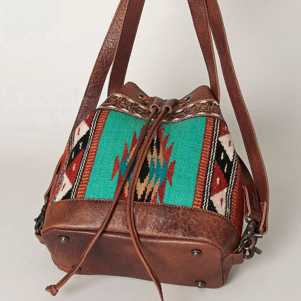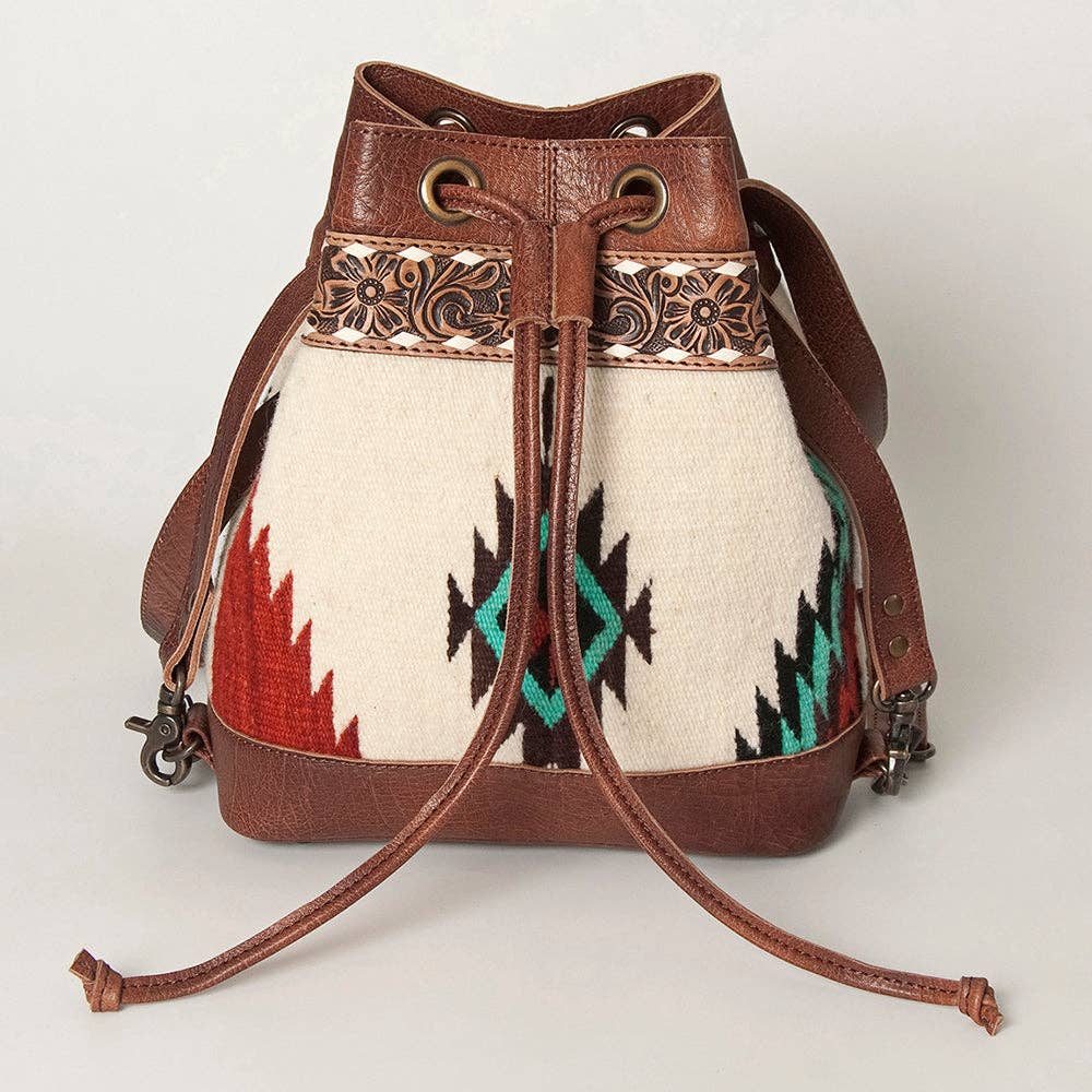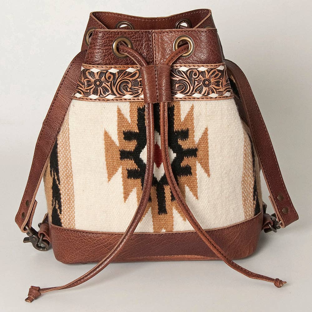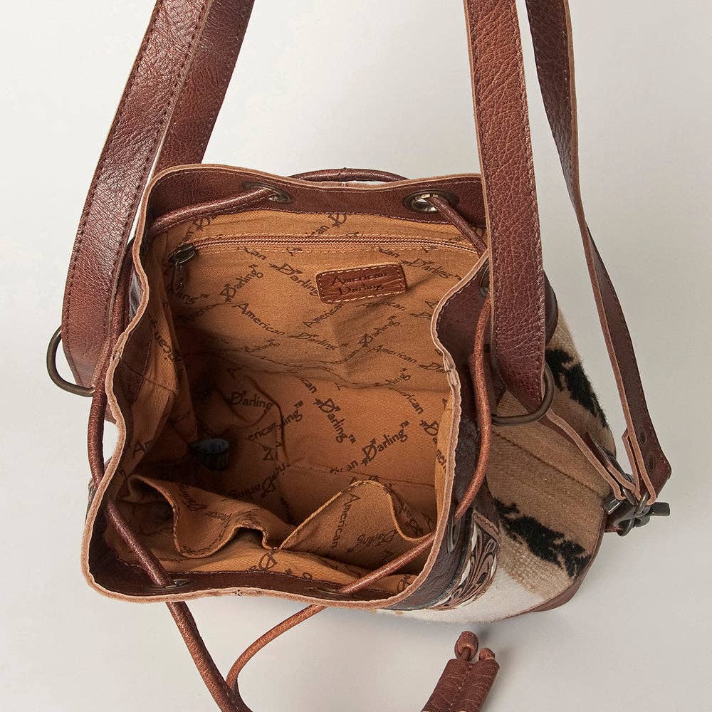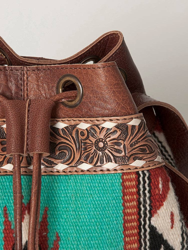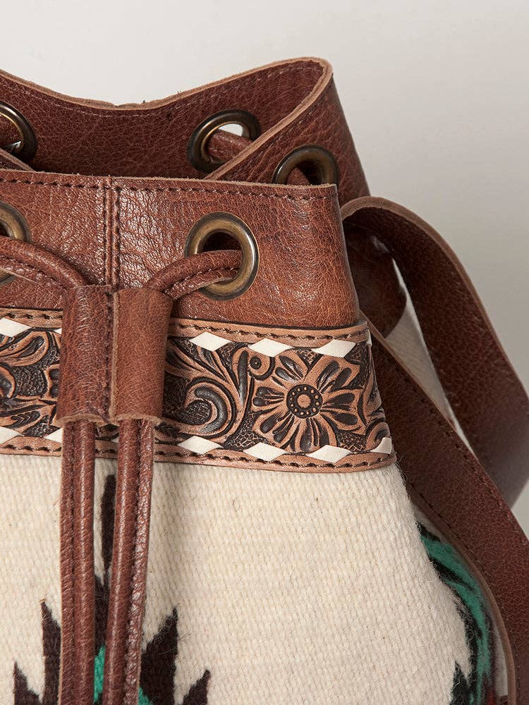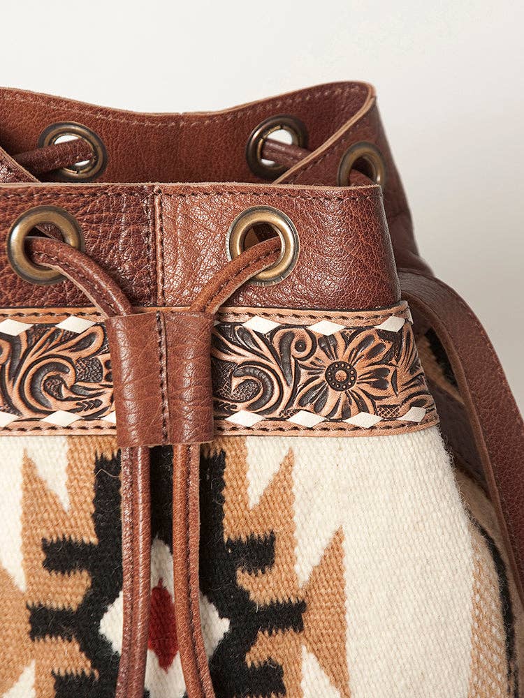 LC-ADBG862 Hand-Tooled Western Leather Bucket Bag with Wool Blanket Weave American Darling Drawstring Purse
