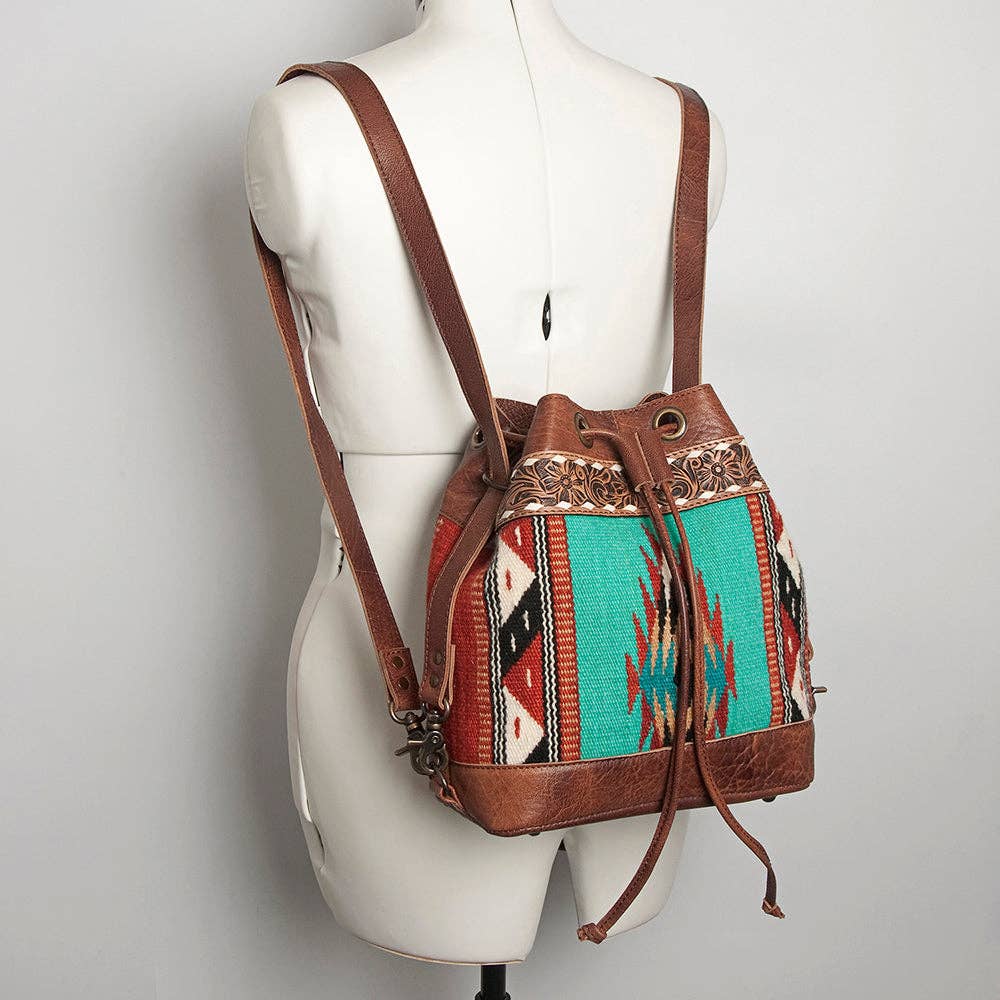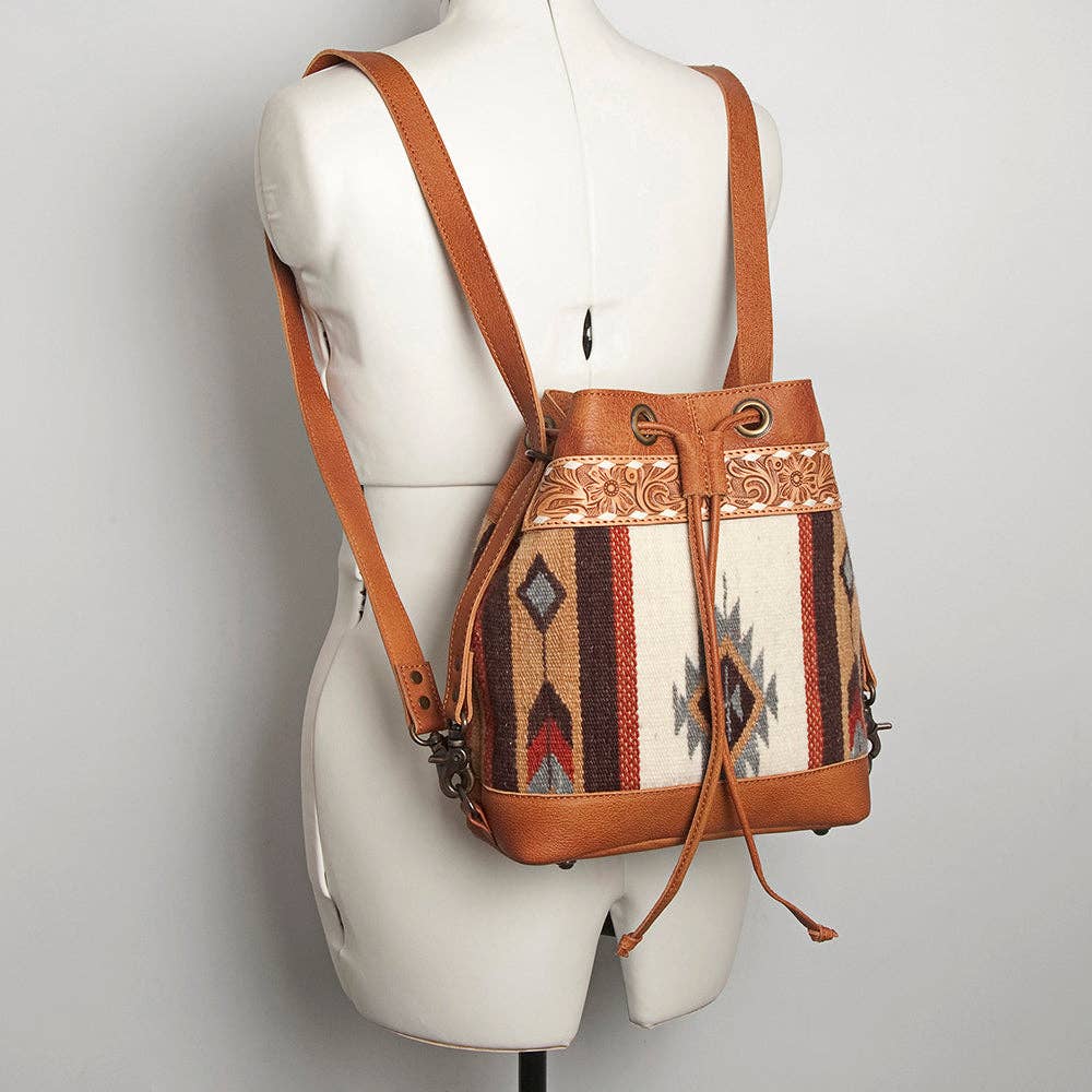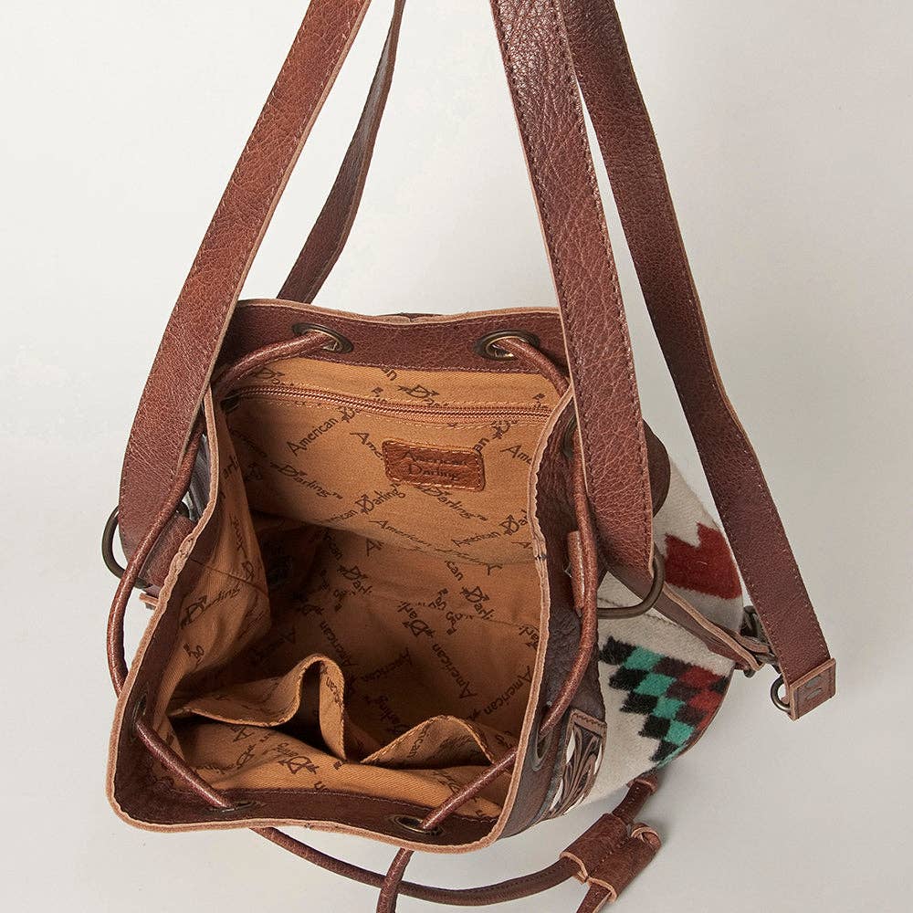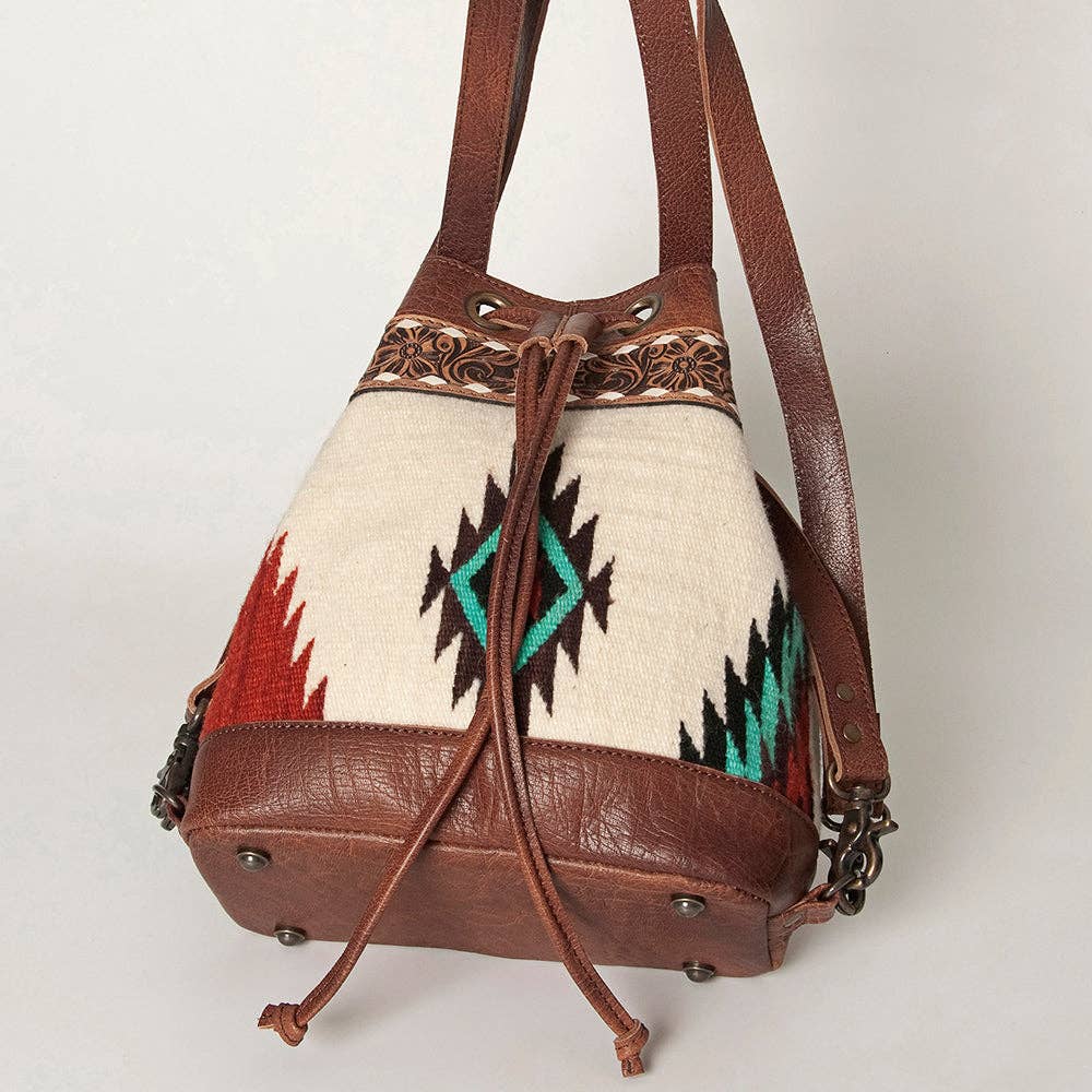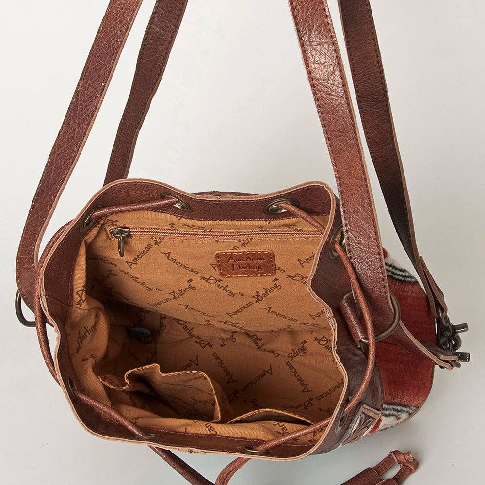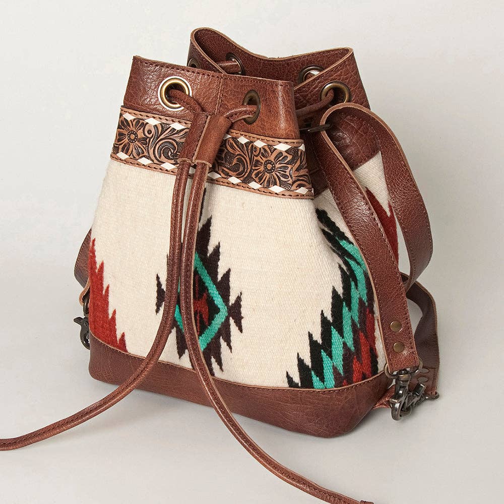 LC-ADBG862 Hand-Tooled Western Leather Bucket Bag with Wool Blanket Weave American Darling Drawstring Purse