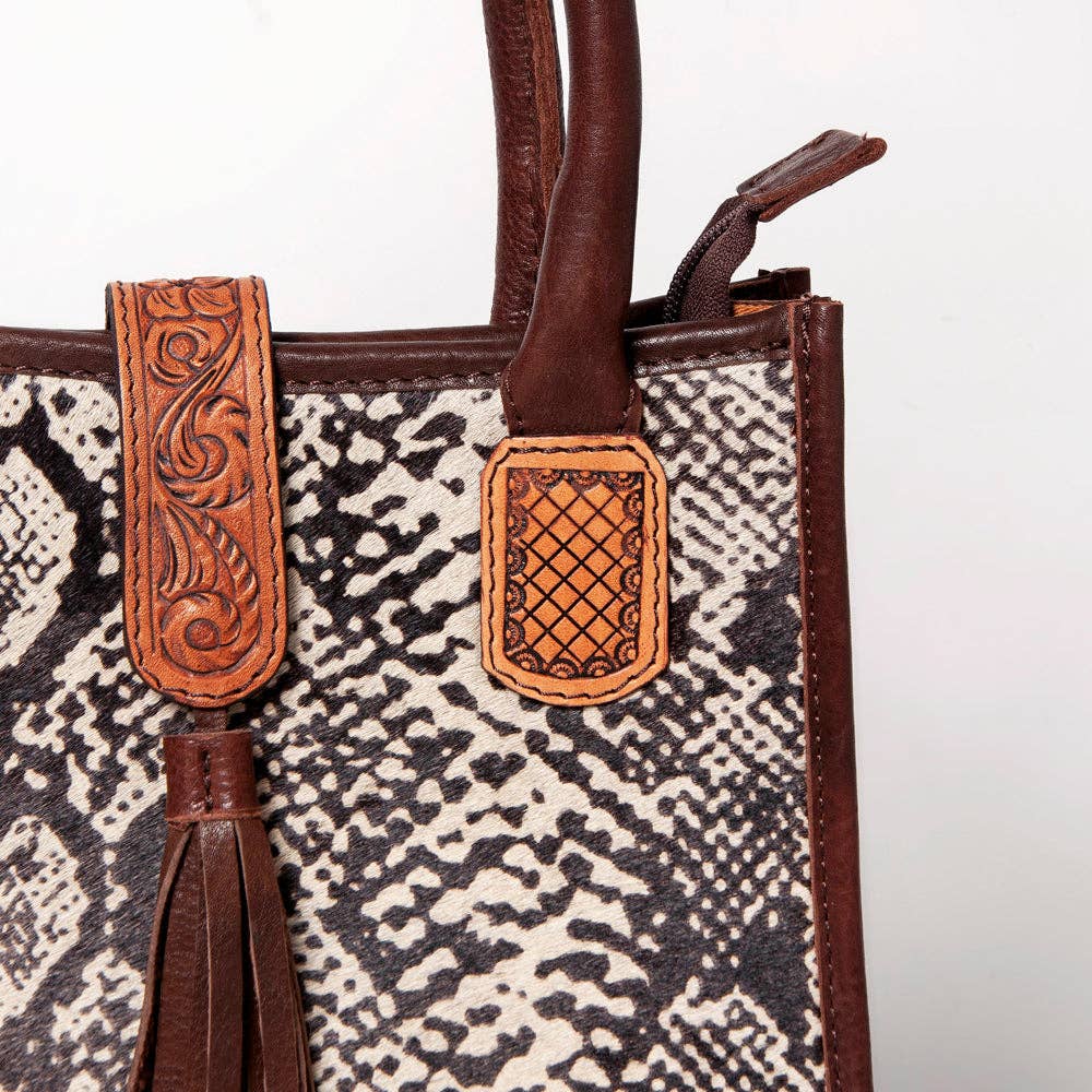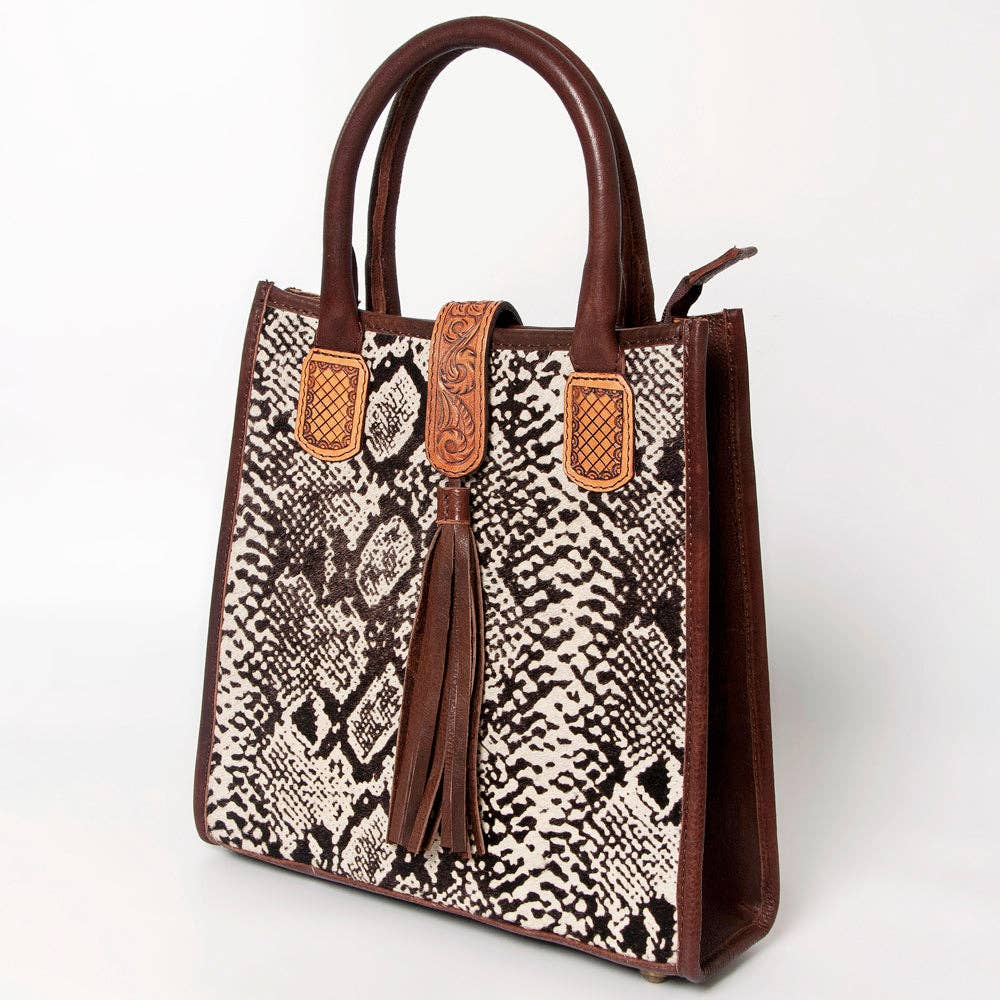 LC-ADBGA279 American Darling Cowhide Tote with Tooled Leather & Tassel Genuine Hair-On Hide
