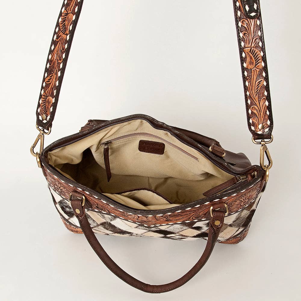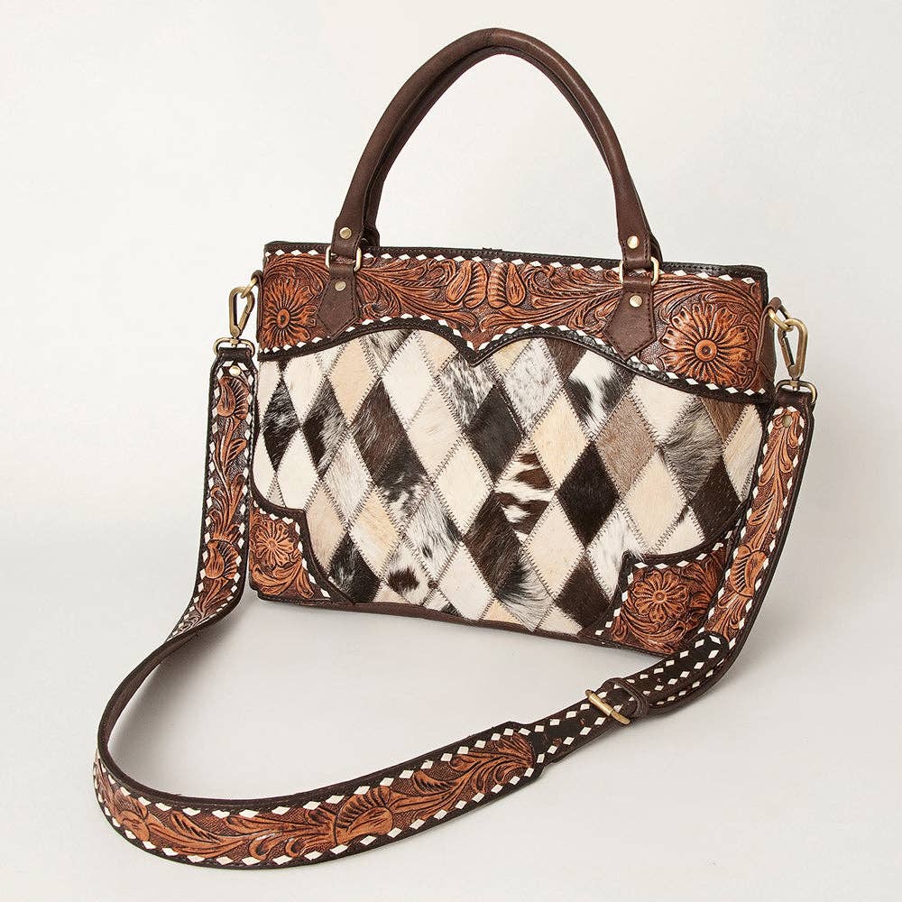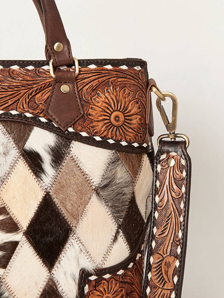 The handpicked cowhide hair-on genuine leather not only adds a soft and tactile element but also serves as an embellishment, enhancing its overall western appearance.