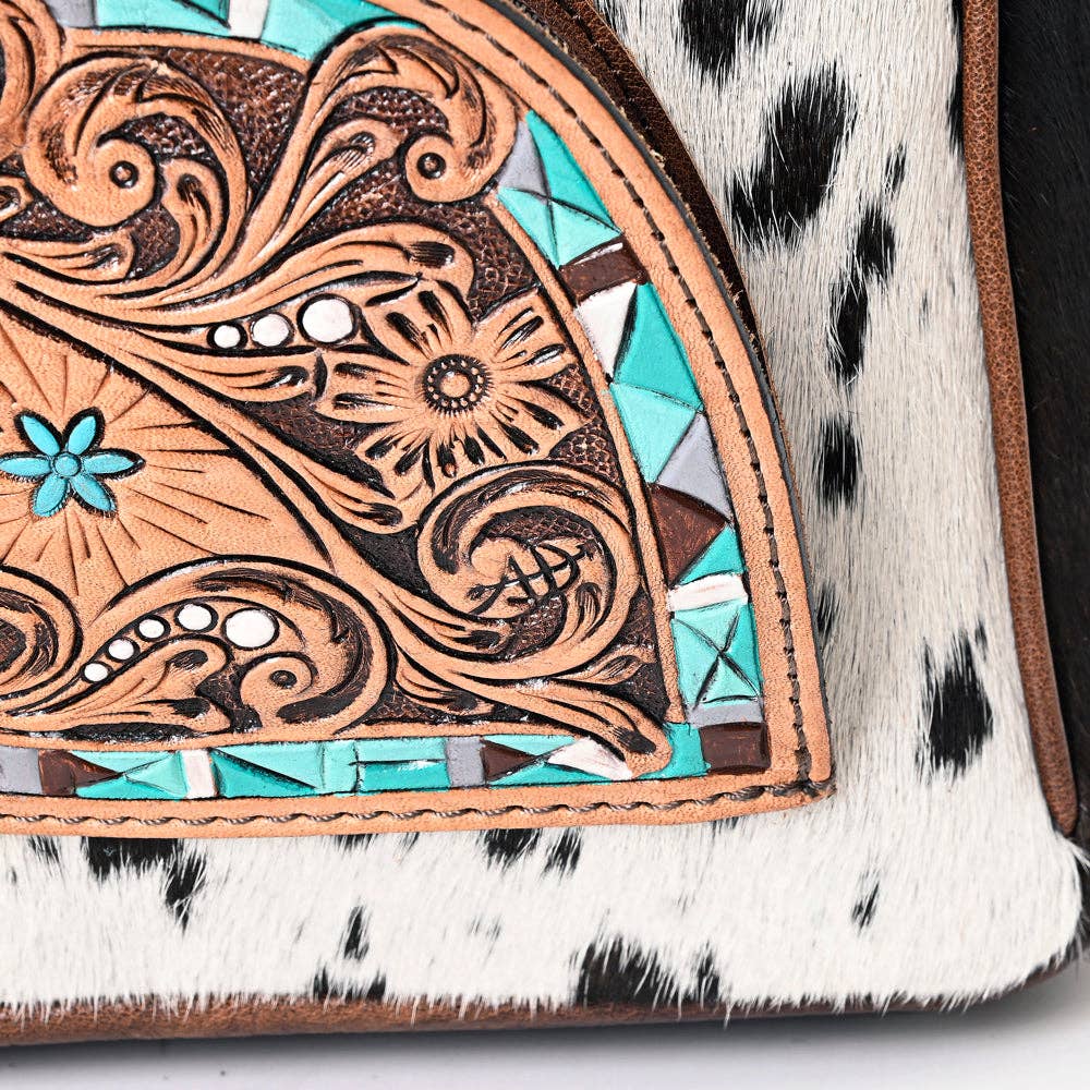 Detailed Hand tooled, carved and painted vegetable tanned American Cowhide Leather exquisitely done by the finest craftsmen in the country. High quality Genuine Full Grain Leather. Soft and supple leather that ages beautifully as it wears. The handpicked cowhide hair-on genuine leather not only adds a soft and tactile element but also serves as an embellishment, enhancing its overall western appearance. Adjustable genuine leather shoulder strap. Genuine brand known for long lasting and durable zipper closures ensure security of your essentials.