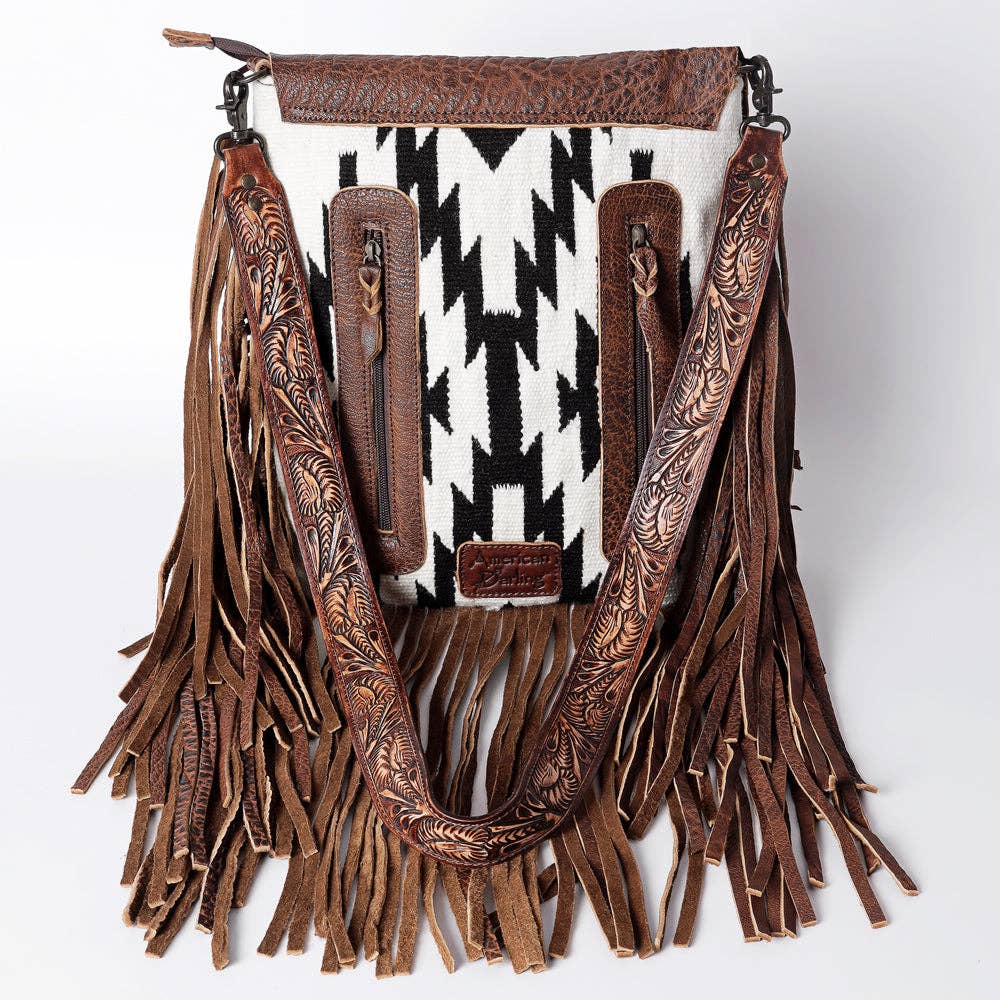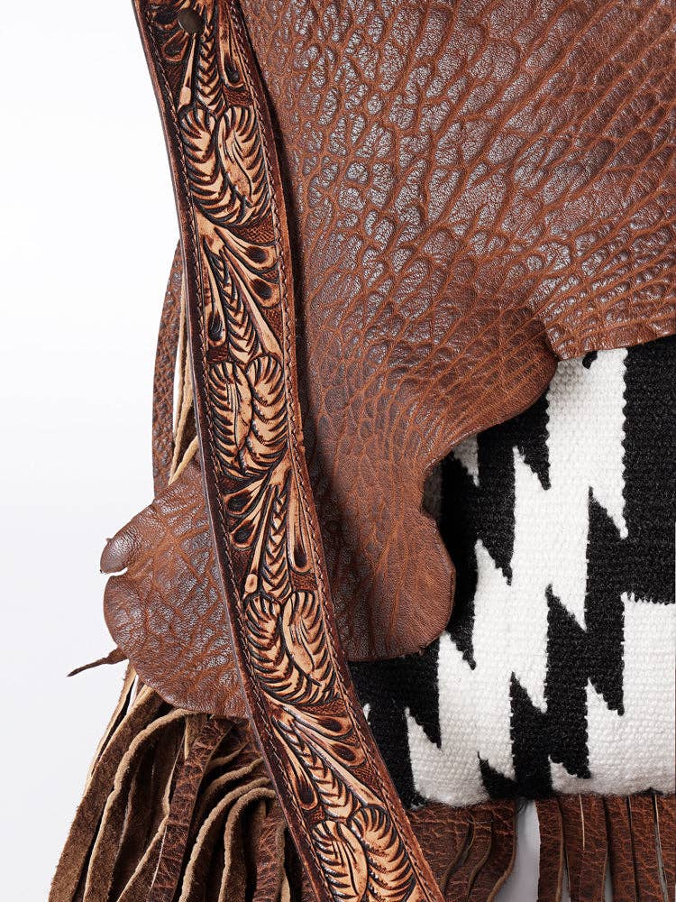 American Darling is a proud Official Designer Sponsors of New York Fashion Week 2024. A meticulously hand weaved wool saddle blanket giving it a western traditional yet trendy and elegant look. High quality Genuine Full Grain Leather. Soft and supple leather that ages beautifully as it wears. Decorated with beautiful leather fringes giving it a western look. The shoulder strap is adjustable and made of 100% genuine vegetable tanned Cowhide Leather with a hand tooled pattern. Highly durable solid Antique finish metal fittings. Genuine YKK brand known for long lasting and durable zipper closures ensure security of your essentials. Size/Dimensions: 15.5in (H) X 13.5in (W) A luxurious and western handcrafted leather collection designed by American Darling here in the heart of Texas. These gorgeous creations deliver a blend of western culture and heritage along with the latest fashion and trendy appeal. It makes your appearance eye-catching by its amazing colors, materials, and meticulous hand work.