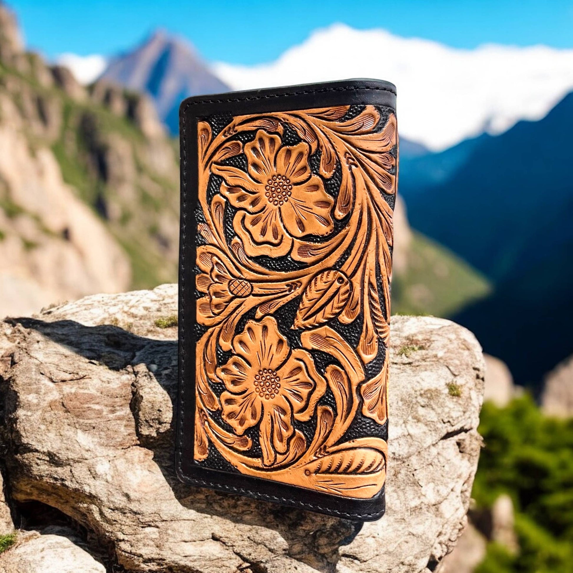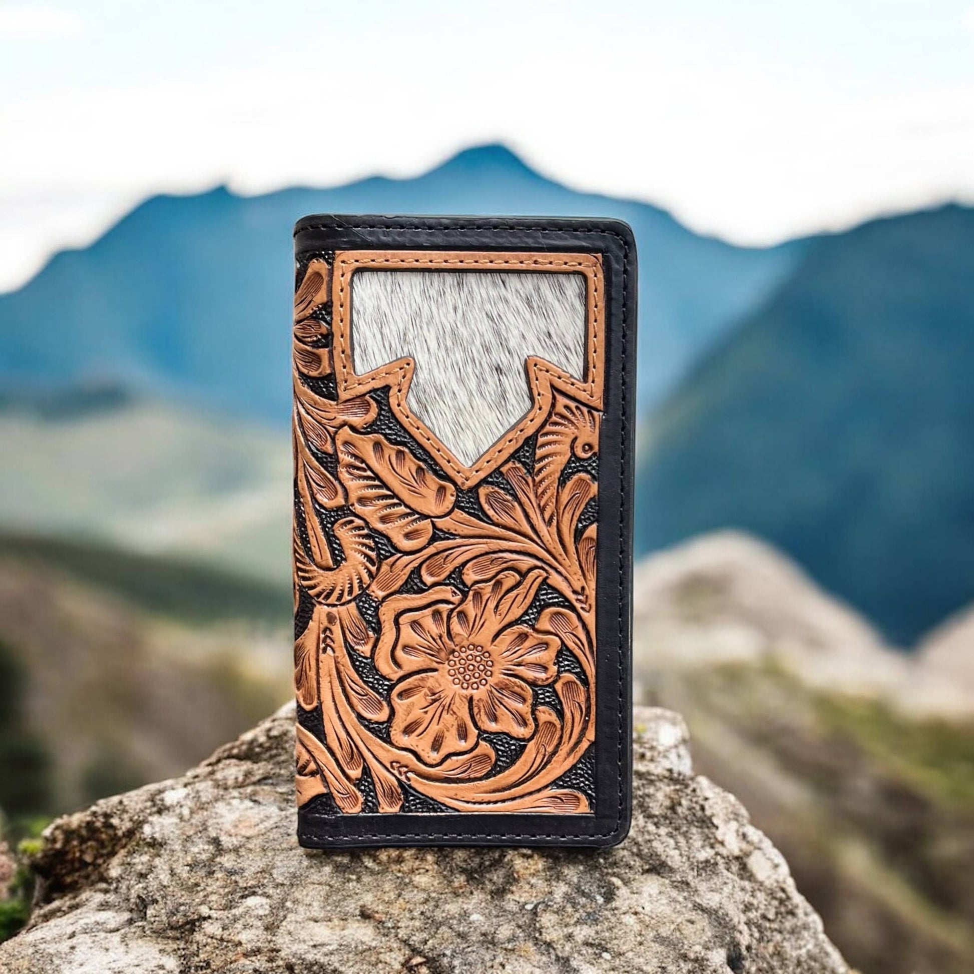 Discover our handcrafted tooled leather and cowhide men's wallets, combining style and durability. Elevate your accessory game today!